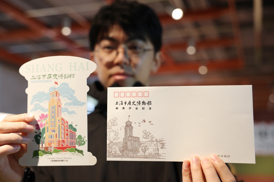 市民在新亮相的上海市历史博物馆邮局购买纪念封和明信片。