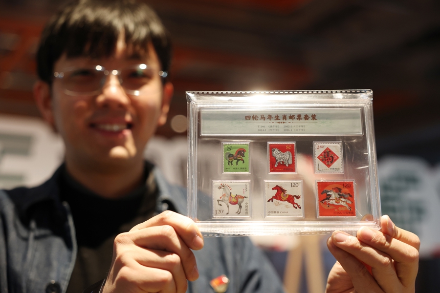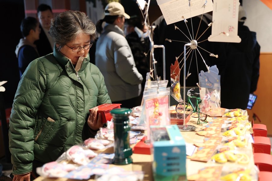 市民在新亮相的上海市历史博物馆邮局购买马年纪念品。