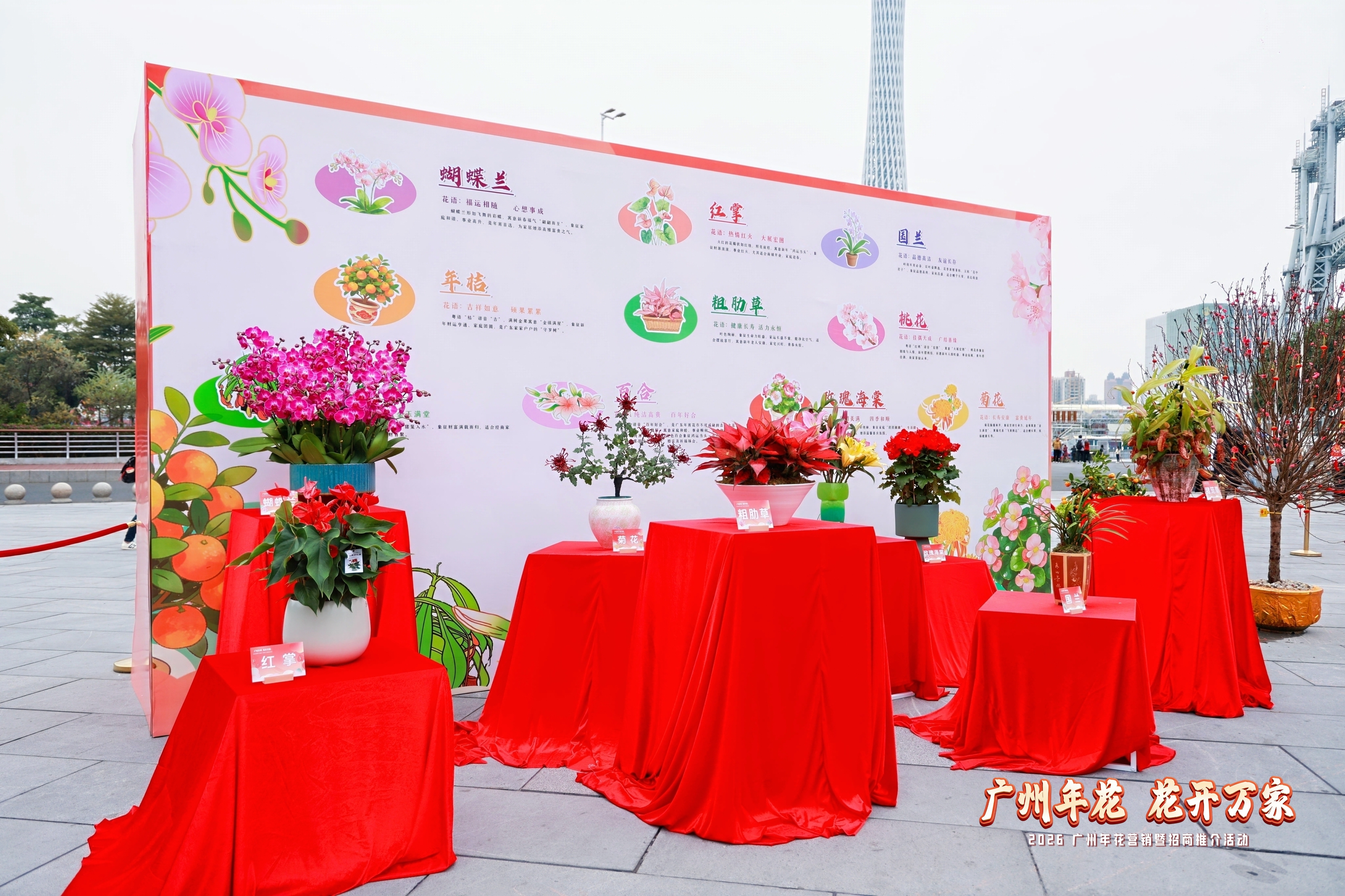 千年花市暖如春,红桃金桔映笑颜!1月23日,广州市农业农村局联合市供销合作总社等单位在花城广场举办“广货行天下”春季行动系列活动之“广州年花 花开万家”年花营销暨招商推介活动。本次活动通过设置可逛可玩的花卉展销体验空间、推出广州主产十大年花、发布“2026广州年花藏宝图”,立体宣传花城文化、展示产业新赛道,提升广州年花品牌价值,并向各界发出招商引资引智合作的盛情邀请。