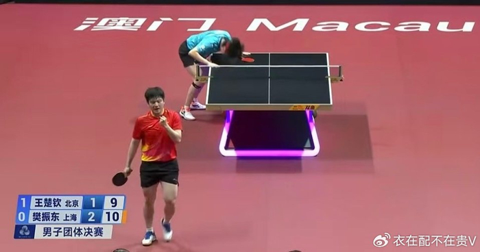 北京时间11月20日,全运会乒乓球男团决赛,上海队对阵北京队,王楚钦1-3被樊振东逆转,5天遭到对方的双杀。